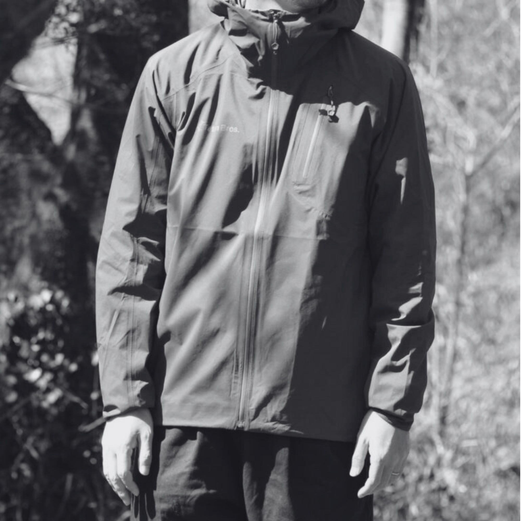 透湿性・伸縮性・着心地を高いレベルでバランスさせ、耐水圧50,000mm、透湿性60,000g/m²/24hという非常に高いスペックを持ちながら、Mサイズ132gとウィンドシェル並みの軽さを実現しています。表地には7D×12Dのナイロン平織り生地、裏地には7Dのナイロンニットを使用した極薄の3レイヤー構造を採用。