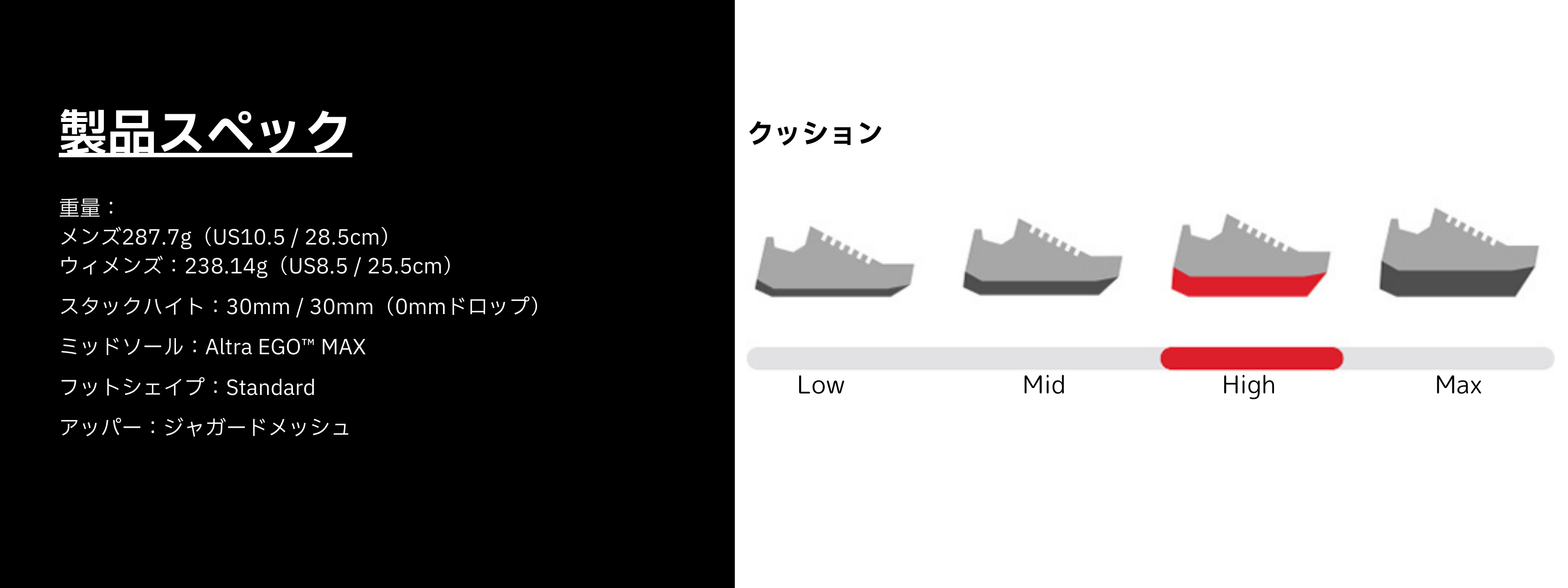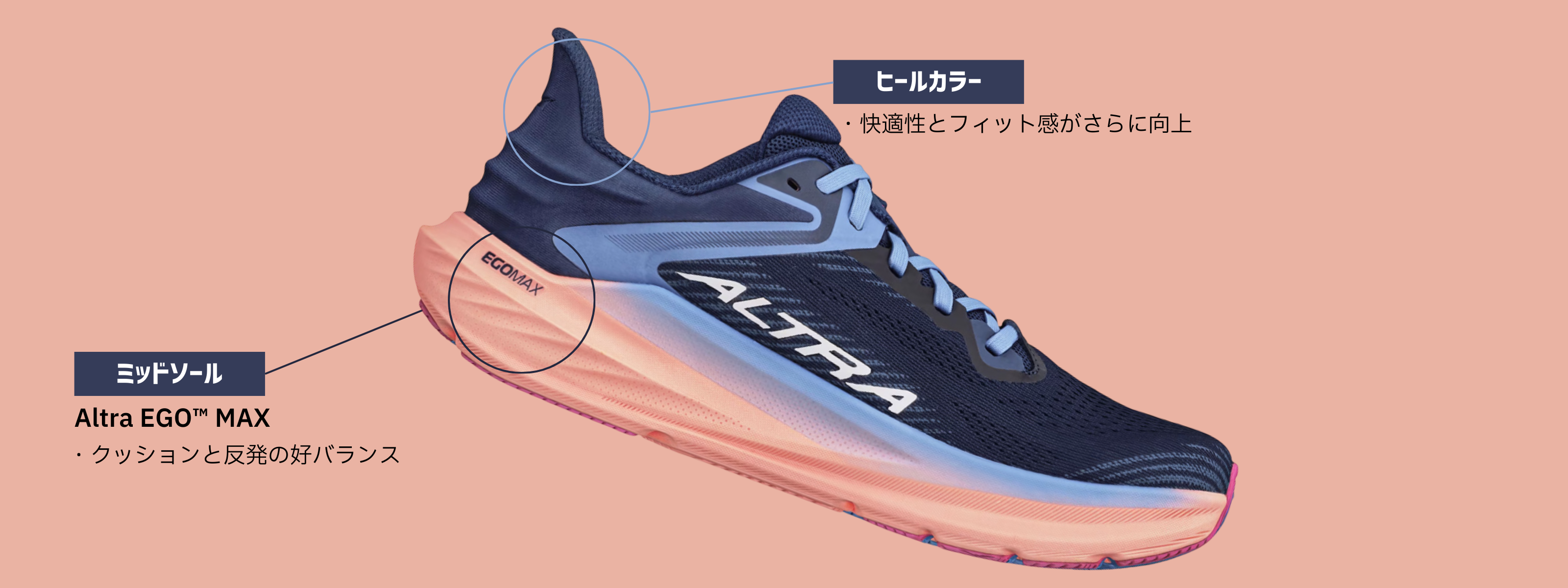 ミッドソールには、アルトラEGO™ MAXフォームを採用。